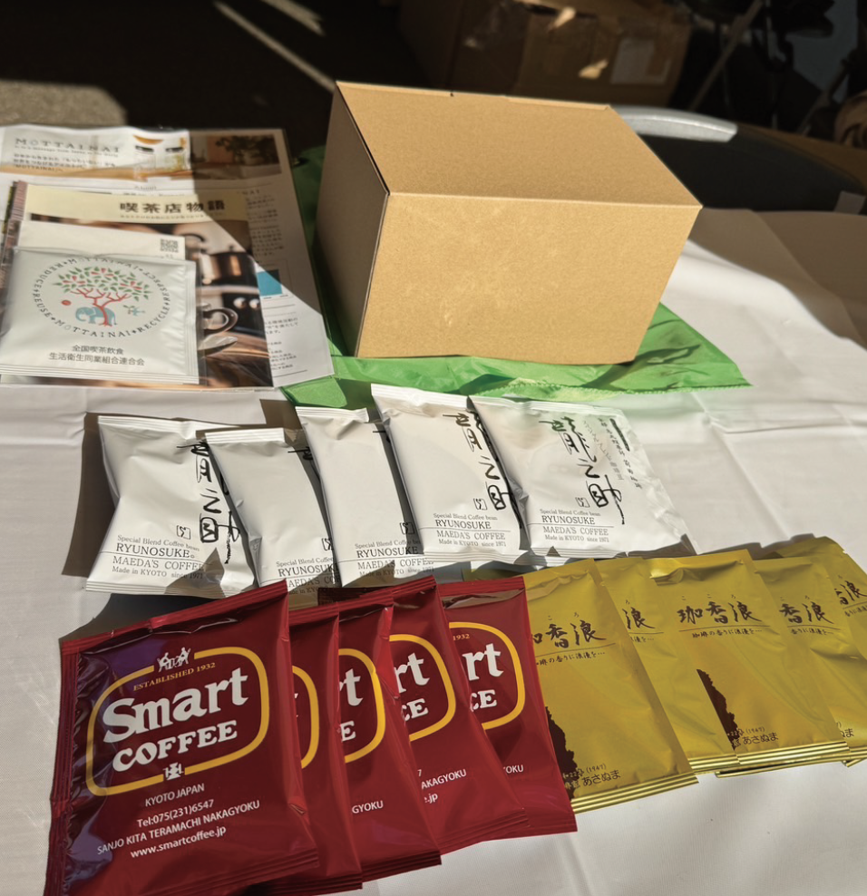 生活衛生同業組合による「せいえいお楽しみ福袋」に、当組合からは3店舗のドリップパックコーヒーの詰め合わせを販売し、今年は全喫飲連生活衛生活性化事業である、エコバッグなどの広報グッズの配布も同時に行いました。